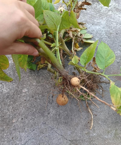 黄萎病首先会侵害土豆的根部,然后开始向上蔓延,而根部染病后,病菌会破坏植株内的维管束,导致营养的吸收与运输受到极大阻碍,从而出现叶子枯萎现象。