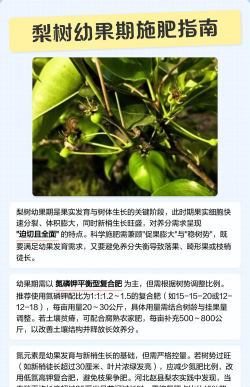 梨树春季施肥时间是在3-5月份进行。施肥应该严格的控制好施肥量,不要过量的施加肥料,也不要给它施加太浓的肥料,而且施肥也不要离根部位置过近,可以在树冠外0.5-2.5m的位置开一个沟,沟的深度在20-30cm左右就行,然后把肥料施加到沟中,再将沟给填平就可以了。