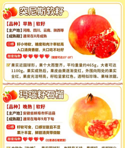 石榴有一百多个种类,常见的石榴品种有安石榴、白石榴、黄石榴、花石榴、石榴等,其中安石榴的花朵为朱红色或白黄色,籽粒为鲜红色,白石榴籽粒香甜可口,含糖量高,而黄石榴果皮较厚,籽粒较多。