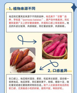 地瓜和红薯的区别表现在品种、形状、生长周期上,地瓜是豆科藤本植物,其根茎呈现椭圆形,表皮为黄白色,果肉为白色,生长周期有七个月,红薯是旋花科草本植物,其根茎呈现长圆形,表皮为红色,果肉为黄色,生长周期有四个月。