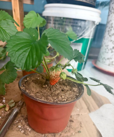 栽培草莓盆栽首先要选对花盆,由于阳台属于半开放的空间,会有大风和鸟雀等外界的因素干扰,使用的花盆首先一定要耐风化和暴晒以免被晒裂,其次要有一定重量防止翻倒,所以使用大小合适的陶土或泥瓦花盆是最好的。
