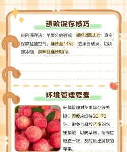 在挑选用以储存的苹果时,要选择质量较好、没有腐烂现象的,且要注意定期检查,及时挑出腐烂干瘪的丢弃掉,如果苹果整体偏干可以适当喷水保湿,注意不要把苹果和其他的熟果放在一起,以免苹果熟过头变软。