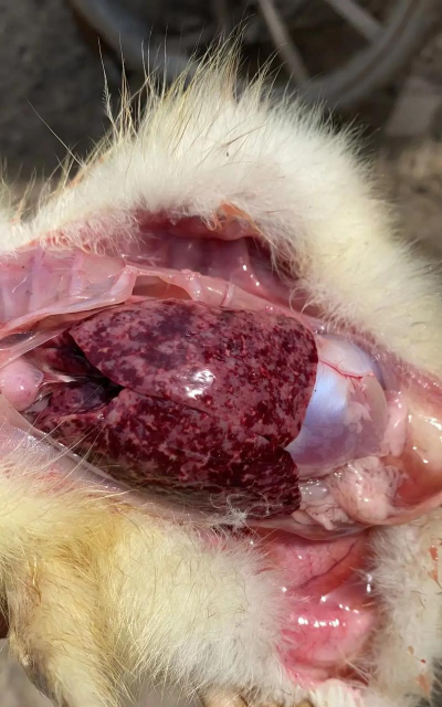 症状:雏鸭急性发病,抽搐、头后仰(“背脖病”),死亡率高达90%。肝脏肿大出血,胆囊充满胆汁。