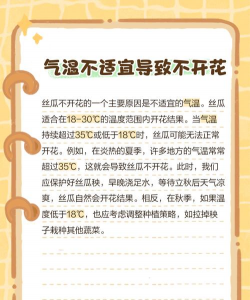 丝瓜坐不住果可能是植株生长的环境温度过高,且昼夜温差较小,导致果实无法正常的发育生长,所以在后期养护时需要为丝瓜采取降温处理,在温度过高的情况下可以将其移向阴凉的环境中养护,让丝瓜顺利的长出果实。