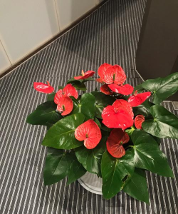 红掌花期长,温湿度适宜时可全年开花,单朵花可持续4-6个月。其佛焰苞色彩明艳,搭配翠绿的叶片,整体如“手掌托火焰”,热烈而华丽,适合盆栽或切花观赏。