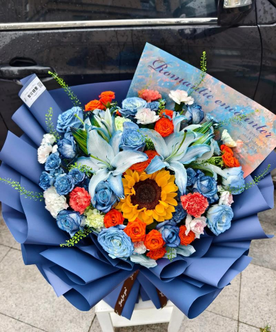 混搭花束:阳刚花材(如向日葵)搭配少量百合或满天星,增添层次感但保持主体刚毅。