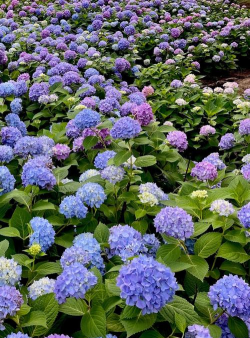 绣球花的花期大约有3个月,每年6到8月份开花,一年基本上只会开一次花,开花时花色丰富,有白色、蓝色、粉红色、蓝色等,伞房状聚伞花序为近球形,有着短花梗,花密集,花瓣呈长圆形,花药长圆形,从开花到花谢大概可维持25天左右。绣球花在花期时每半月施肥1次,盛夏光照过强时,适当的遮荫可延长观花期。
