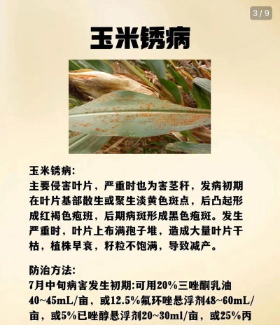 1、玉米斑病:是玉米种植过程中的一种危害较为严重的病害,会对玉米的叶片、叶鞘造成危害,严重的情况下,还会对玉米的果穗和苞叶造成危害。