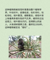 银杉,属裸子植物,松科,是三百万年前第四纪冰川后残留下来至今的植物,中国特有的世界珍稀物种,和水杉、银杏一起被誉为植物界的“大熊猫”,国家一级保护植物。银杉是松科的常绿乔木,主干高大通直,挺拔秀丽,枝叶茂密。银杉雌雄同株,每当微风吹拂,便银光闪闪。