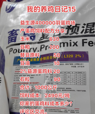 3、产蛋期饲料配方开产期:玉米72.00%,大豆粕10.0%,花生仁饼8.0%,鱼粉(国产)2.20%,磷酸氢钙1.30%,石粉5.52%,蛋氨酸0.10%,赖氨酸0.11%,植物油1.0%,添加剂0.50%,食盐0.30%。产蛋高峰期:玉米55.7%,次粉8.0%,大豆粕11.5%,花生仁饼8.0%,鱼粉(国产)4.0%,磷酸氢钙1.2%,石粉7.7%,蛋氨酸0.10%,植物油3.0%,添加剂0.50%,食盐0.30%。