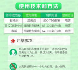 2、水稻和柑橘一次施药距收获的天数分别为21天和21天,水稻每季多用药3次,柑橘每年多用药3次。