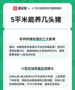 现代设施养殖 :每平方米可养9头猪(如10平方米养9头),但需严格控温、通风和健康管理。