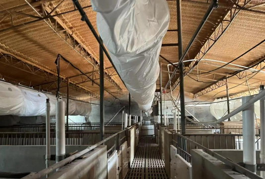天花进风设计:大进深猪舍(如超过20米)建议采用天花进风口,冷风与热空气混合后再下沉,避免局部过冷。