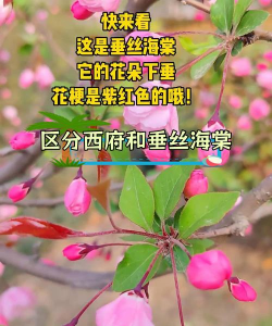 2、西府海棠的花朵颜色刚开花的时候颜色很鲜艳,但之后会渐渐变得暗淡,而垂丝海棠的花朵则一直都保持着红色。