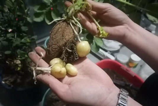 在种植土豆前,需要挑选出健康的土豆母株,然后将母株清洗干净,切成小块浸泡到生根水中,等待5小时后,再将土豆块用干净的棉布包裹起来,放置在阴凉处进行催芽,-般10-15天左右,土豆块就能生长出嫩芽。