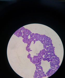 酵母菌母细胞在一端出芽,芽基处出现隔膜,子细胞呈瓶状。
