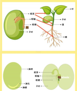 2、胚:由受精卵所发育而成的,发育完整的胚包括胚芽、胚轴、子叶、胚根。是种子最重要的部分,可以发育成植物的根、茎和叶。