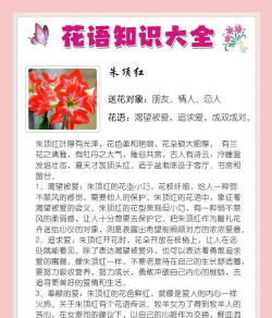 朱顶红花语是渴望被爱,追求爱,成双成对。另外还有表示自己纤弱渴望被关爱的意思。传递的花语讯息中,朱顶红代表着“在任何境遇中,都要坚持正确的道路”,如同我们在人生的迷途中,每当抬头所见群星时,总有一枚星曜在指示你正确的路向一样,朱顶红也有这样让人在迟疑时重树信念并笃定不移的力量。
