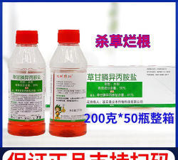 1、草甘膦异丙胺盐是茎叶除草剂,遇土壤易产生“钝化”,失去活性,配制时不能用浑浊水和井水。田间杂草叶面灰尘较多,用药量适当加大。