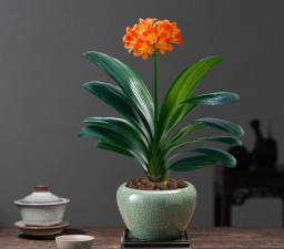 3、富贵吉祥:君子兰开花时花色鲜艳,花苞雍容华贵,烘托出热闹欢快的氛围。