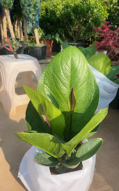 寓意:别名“鸟巢花烛”,花语“财源广进”,叶片厚实有光泽。