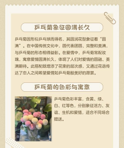 球菊的花语是永恒的爱情和奉献的亲情。寓意着家庭团圆、美满,还可以搭配玫瑰花送给自己喜欢的人,表示希望两人之间的感情可以更加长久。球菊的开花姿态很优美,虽然乍看起来并不惊艳,但是仔细品味和对比下,觉得球菊却有一种独特的风味,就像是在缤纷多彩的花草中找到了一种令人舒服的感觉。