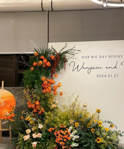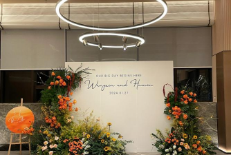 第一印象需风格统一且独特。花器可选择玻璃、藤编等材质,搭配大型花艺或小型花艺小品。迎宾牌、签到台等细节处加入鲜花点缀。