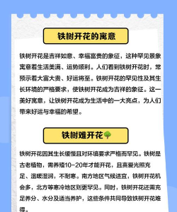 寓意这幸福、健康、富贵、坚贞不屈、吉祥如意,象征着人生之美、好运到来。铁树开花在养殖十年以上才会开花,铁树作为世界上最古老的植株之一,当你看到它盛花时,预示着生活美满,运势顺利,大富大贵。就如同瑞雪兆丰年一般,所以说看到过铁树开花的人都是大富大贵之人。