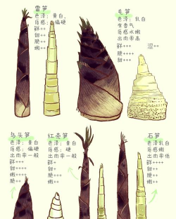 5.看皮色:竹笋埋在地里时,颜色是鲜黄色,长出来后会慢慢变成青色。所以在选购竹笋时,要选择外皮颜色为鲜黄色的竹笋。