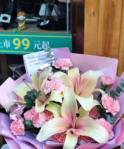 2、送给自己的恋人,注意要用合适的颜色搭配起来,寓意长长久久,爱你永永远远。对自己恋人表达爱意选择百合康乃馨也是极佳的。