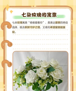 七朵玫瑰代表着偷偷爱着你,七朵玫瑰很适合表白,代表着自己正暗恋着对方。在西方国家,玫瑰花常用来作为新人的手盆花,这一传统起源于古希腊罗马,后来因为维多利亚女王而流传于世,在西方国家新人的手捧花多为单数,当新娘向未婚的闺蜜抛出捧花,也寓意着将这份甜蜜与幸福的玫瑰花语传递下去。