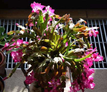 冬天蟹爪兰开花,最好保持在15度以上,千万别折腾:一会儿放这里,一会儿挪到那里。选好位置后不要轻易挪动,可以在同一位置转动,让四面都能均匀采光。