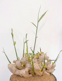 3.下一步就是把生姜上带有芽苗的部分一块块的切下来,种到土壤中。土壤可以选择腐叶土或者是园土。
