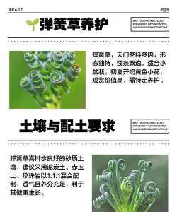 1、温度:弹簧草不喜高温,温暖最适宜。一般来说,可在十五至二十五度。在冬天,最低的过冬温度是零度。不过,在冬天植株会成长,所以温度最好加以调控,在十至二十度之间最好。夏季高温的时候,它会休眠。