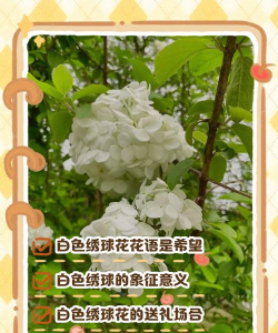 白色绣球花的花语是充满希望。白色绣球花适合送人,用白色绣球来表达祝福;也适合送给病人或者处于低谷期的朋友,祝福自己所关心的那个人能够生活顺利、幸福。绣球花花型丰满,大而美丽,令人悦目怡神,是常见的盆栽观赏花木。