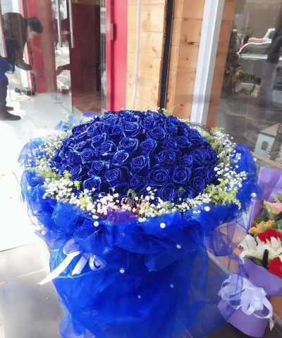 蓝色妖姬作为玫瑰的一种,自然也是代表爱情的了。一般将十二枝搭配满天星一起送,有着非常浪漫的情调。