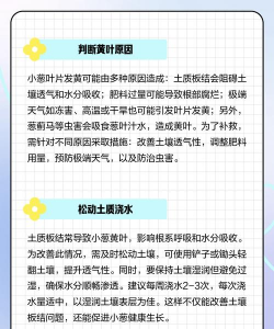 小葱的叶黄了就要做到以下四点:一、暂停浇水:小葱叶子黄了若是浇水多积水导致,要暂停浇水,并排掉积水,勤松土蒸发水分。二、补充养分:若是缺少养分导致,要尽快追肥,补充养分。