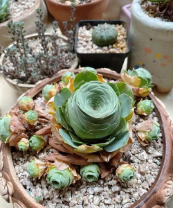 多肉休眠的表现不同,山地玫瑰、鸡蛋玫瑰、特玉莲直接叶子合拢,这个信号甚至还有点美