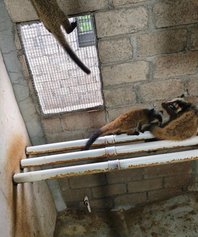 笼舍采用镀锌铁网,内部设置砖砌小室和暗室,满足夜行习性。暗室需遮挡阳光直射,避免中暑。