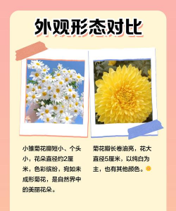雏菊是后者的其中一个品种,株型比较的低矮、偏小,高度大约10厘米;菊花是一类植物的总称,株型相对较高,茎部比较直立。花朵不同:雏菊的花朵比较的小,花瓣比较的短小、笔直,花色相对单调;菊花的样子很多,花瓣较纤长、卷曲、油亮,花朵颜色要比前者多很多。