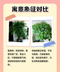 形态不同:幸福树最高能长到10米左右,树干外表的颜色为灰褐色;富贵树树高大约10-12米,树皮为淡灰色。叶子不同:幸福树的叶子稍微小一点,叶子边有不规则的锯齿;富贵树的叶子大,叶子边缘锯齿较少。花朵不同:幸福树花为钟状漏斗形,花色是白色或淡黄色;富贵树花为总状花序,颜色为红色。