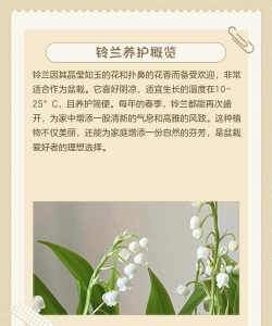 注意事项:适合把铃兰养护在有墙壁的半阴处,每过一个星期转盆一次就可以,然后夏天移居阴凉通风处,冬天进行保暖越冬。