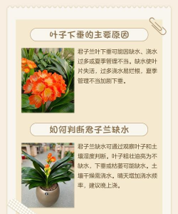 4、水分。君子兰的浇水是需要更具情况改变的,不同的季节需要浇的水量也不一样,最重要是避免盆内有积水,若有积水,需要尽快排除积水,避免烂根。