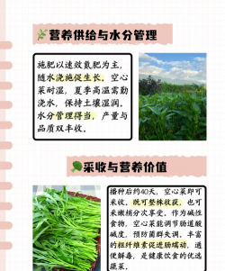 喜高温潮湿气候,对土壤条件要求不严,宜选择土壤湿润、肥沃的黏壤土栽培,环境过干,藤蔓纤维增多,粗老不堪食用,会大大降低产量和食用品质。生长适宜温度为25~30°C,能耐35~40°C的高温,10°C以下生长停滞,受冻后植株枯死。空心菜喜充足光照,对密植的适应性也较强。空心菜生长迅速,需肥需水量大,耐肥力强,对氮肥的需要量极大。
