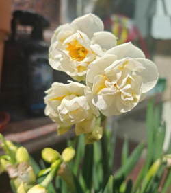 花:伞形花序,每茎可开4-8朵花(多者达16朵),花被6片,白色;副冠浅杯状,黄色,形成经典的“金盏银台”造型。重瓣品种如‘玉玲珑’则花瓣层叠,副冠不明显。