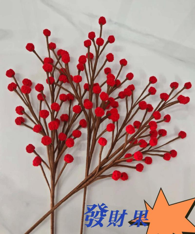 新年祝福:春节期间摆放发财果,因其红色果实和“发财”之名,被认为能带来新年的好运与喜气。