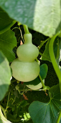 葫芦的果实有淡黄色的,也有红褐色的,果肉酸甜多汁,有的类型的葫芦的果实更大,而另一类的则相对较小一些。大型葫芦的果肉较厚,不易烂,口感较青绿,较小的葫芦果肉较酸,口感较柔软。