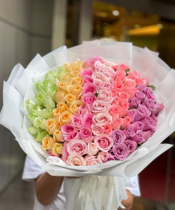 玫瑰颜色有红、黑、黄、白、粉、淡绿、橙、紫、蓝、橘红等颜色。玫瑰在最开始其实只有红、黄、白这这几个基础色,其他的玫瑰颜色都是根据大众需求而改良研发的新品种玫瑰花。新品种最出名的代表就是“蓝色妖姬”,是人工染色的一种加工型花卉,因其独特的颜色在市场上大受欢迎。