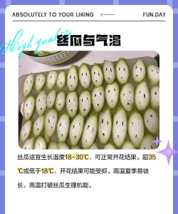 温度:丝瓜属喜温、耐热性作物,丝瓜生长发育的适宜温度为20-30℃,丝瓜种子发芽的适宜温度为28-30℃,30-35℃时发芽迅速。