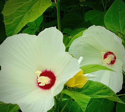 芙蓉葵花朵硕大,花色鲜艳美丽。植株耐高温湿热的能力强,管理简单。园林绿化中可用大型容器组合栽植,或地栽布置花坛,花境,也可绿地中丛植、群植。